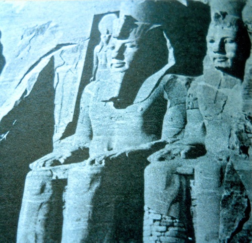 upon a temple. At the centre there emerges a huge head of solid granite. Its